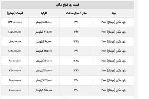 با مطالعه جدول زیر اطلاعات بیشتری درباره قیمت روز خودروهای مگان به دست خواهید آورد.
