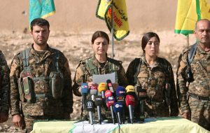 اما آمریکا مثل ناخدایی بود که کردها را هدایت می کرد. آنچنان که وقتی داعش کوبانی را محاصره کرد، حملات هوایی آمریکا و مقاومت SDF شراکتی را زاده کرد. پیش از این، این مثل لحظهای بود که دو غریبه در میدان جنگ دست هم را گرفتند، و پس از آن، این همکاری به ستون فقرات مبارزه با خلافت داعش تبدیل شد. فارن پالیسی، در ۱۳ اکتبر ۲۰۱۹ نوشت که ۲۰۰۰ سرباز آمریکایی، SDF را از تاکتیکهای جنگی تا مدیریت زندانهای ۹۰۰۰ داعشی آموزش دادند. پیش از این، این مثل مسلح کردن یک سپاهی بود، و پس از آن، این نیرو حالا ۷۰ درصد نفت و گاز سوریه را کنترل میکند، گنجی که برای واشنگتن حیاتی بود.