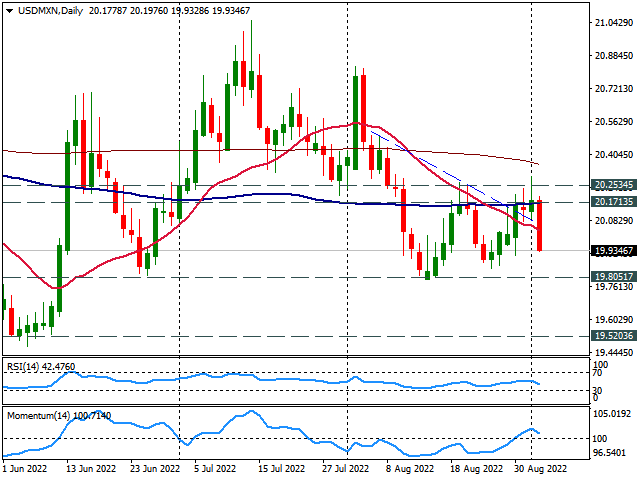 • USD/MXN نتوانست مقاومت بحرانی 20.25 را بشکند.