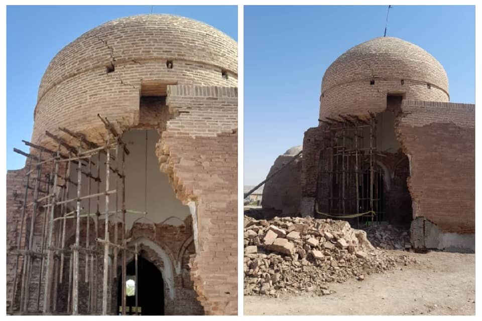 ۹. با توجه به تخریب بیش از ۵۰ درصد گنبدخانه مرمت این بخش از بنا اقدام چندان موثری نخواهد بود و امکان ریزش مجدد در سالهای آتی بالا خواهد بود.