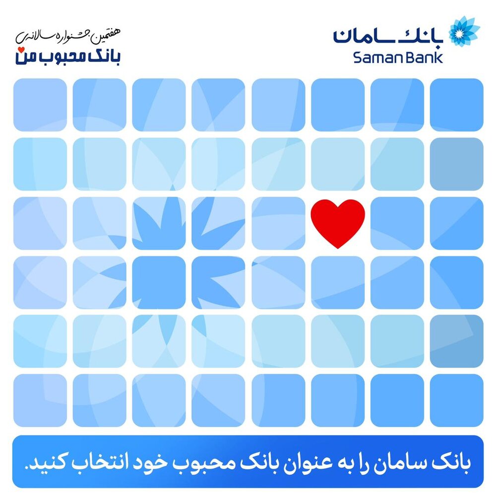 لذا بانک سامان از تمام مشتریان شبکه بانکی کشور میخواهد تا ضمن مشارکت در این جشنواره، بانک سامان را بهعنوان بانک محبوب خود انتخاب و نظرات خود را در اختیار مدیران این بانک قرار دهند.