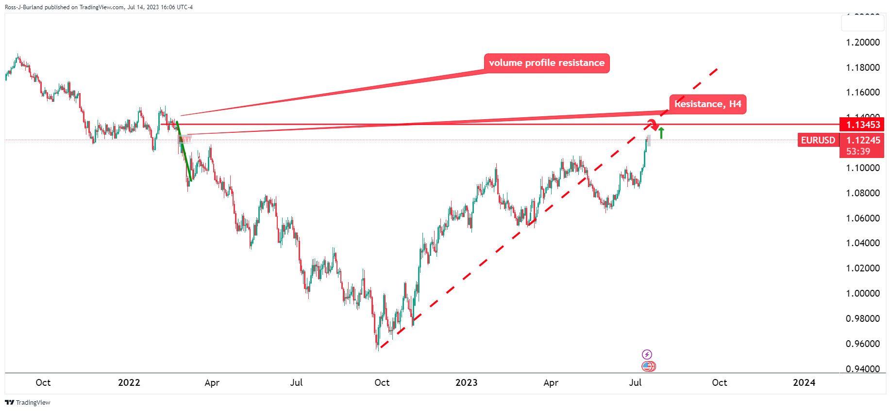 EUR/USD در قیمت پیشنهادی متوقف شده است اما حرکت اساسی غیرقابل انکار است. در زمان نگارش، ارز واحد در حال بررسی مقاومت کلیدی است، همانطور که موارد زیر نشان میدهند، با این حال، خرسها در حال برنامهریزی بازی خود هستند، زیرا نمودارهای زیر به سمت آن متمایل میشوند. در همین حال، با متبلور شدن بازارها در نمودارها مبنی بر اینکه فدرال رزرو در بحبوحه کاهش تورم به پایان چرخه افزایش نرخ خود نزدیک شده است، دلار آمریکا در یک اصلاح افزایش یافت.
