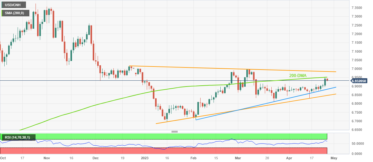 از 200-DMA عقب نشینی می کند تا روند صعودی سه روزه بالاتر از 6.9300 را تجربه کند.