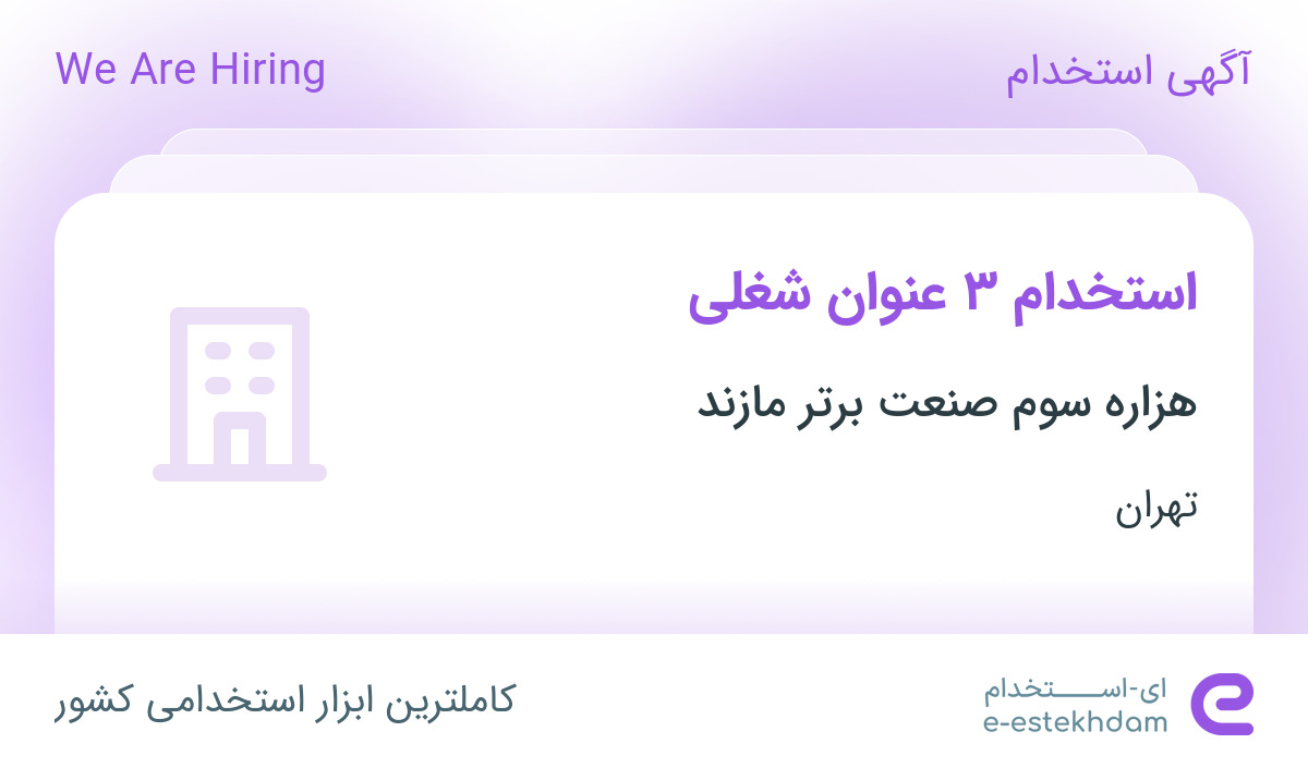 شرکت هزاره سوم صنعت برتر مازند جهت تکمیل کادر خود در استان تهران از افراد واجد شرایط زیر دعوت به همکاری مینماید.