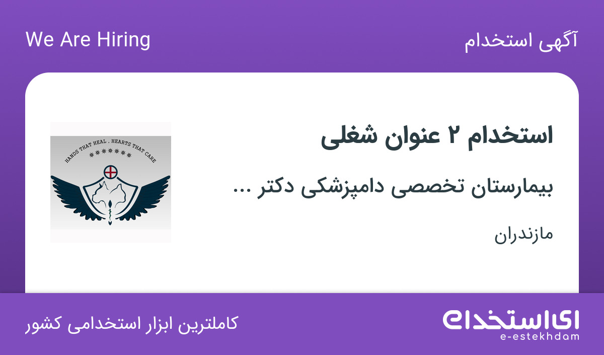 استخدام بیمارستان تخصصی دامپزشکی دکتر حسن زاده