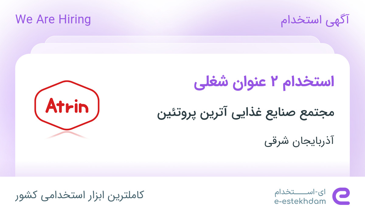 مجتمع صنایع غذایی آترین پروتئین جهت تکمیل کادر خود در استان آذربایجان شرقی از افراد واجد شرایط زیر دعوت به همکاری می نماید.