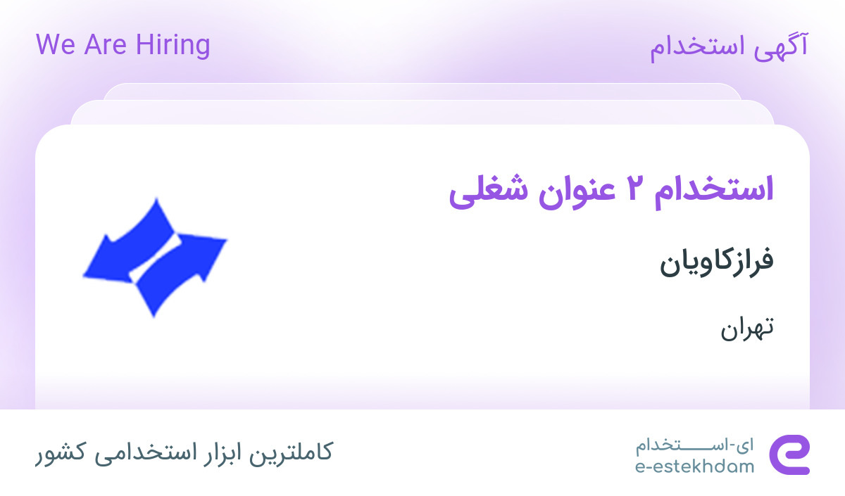 فرازکاویان جهت تکمیل کادر خود در استان تهران از افراد واجد شرایط زیر دعوت به همکاری می نماید.