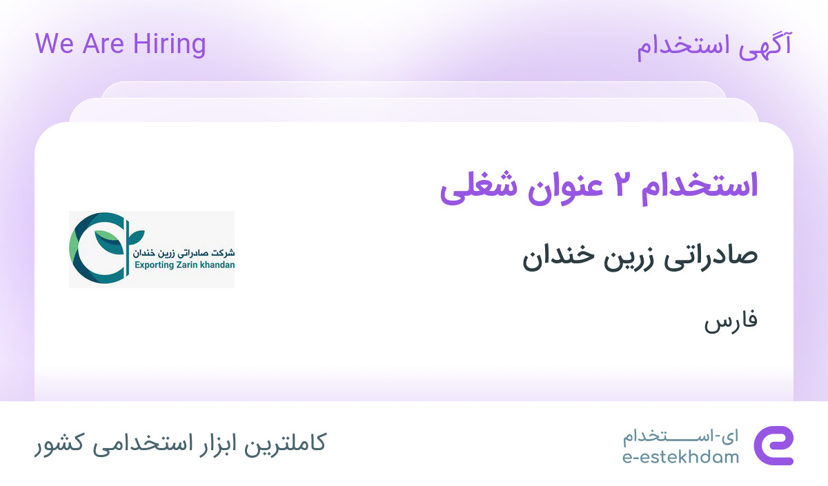 شرکت صادراتی زرین خندان جهت تکمیل کادر خود در استان فارس، شهر شیراز از افراد واجد شرایط زیر دعوت به همکاری مینماید.