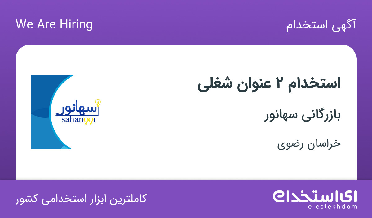 بازرگانی سهانور جهت تکمیل کادر خود در استان خراسان رضوی از افراد واجد شرایط زیر دعوت به همکاری می نماید.