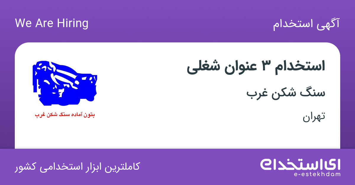 سنگ شکن غرب جهت تکمیل کادر خود در استان تهران از افراد واجد شرایط زیر دعوت به همکاری می نماید.