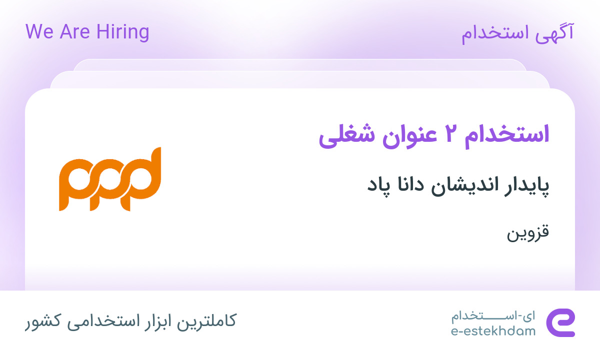شرکت پایدار اندیشان دانا پاد تولید کننده سیستم های تهویه خودرویی جهت تکمیل سرمایه انسانی خود در استان قزوین از افراد واجد شرایط زیر دعوت به همکاری مینماید.