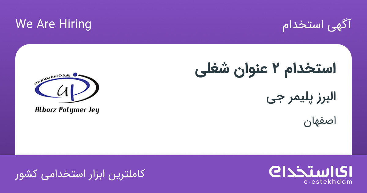البرز پلیمر جی جهت تکمیل کادر خود در استان اصفهان از افراد واجد شرایط زیر دعوت به همکاری می نماید.