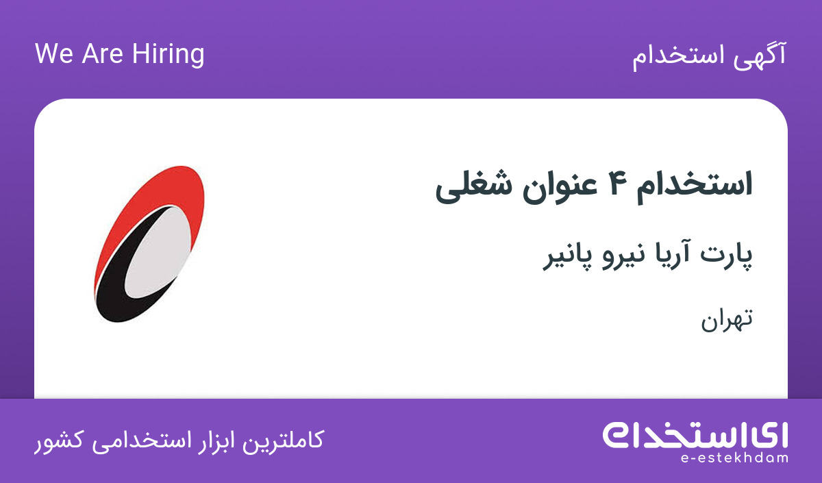 شرکت پارت آریا نیرو پانیر جهت تکمیل کادر خود در استان تهران، سعیدآباد شهریار از افراد واجد شرایط زیر دعوت به همکاری مینماید.