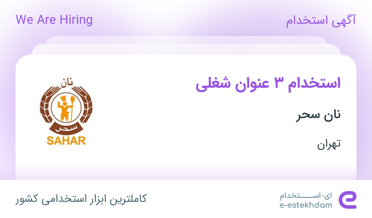 نان سحر جهت تکمیل کادر خود در استان تهران از افراد واجد شرایط زیر دعوت به همکاری می نماید.