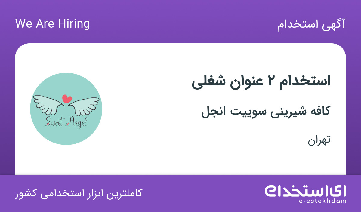 کافه شیرینی سوییت انجل (واقع در تهران، دوراهی قلهک) جهت تکمیل کادر خود در استان تهران از افراد واجد شرایط زیر دعوت به همکاری مینماید.