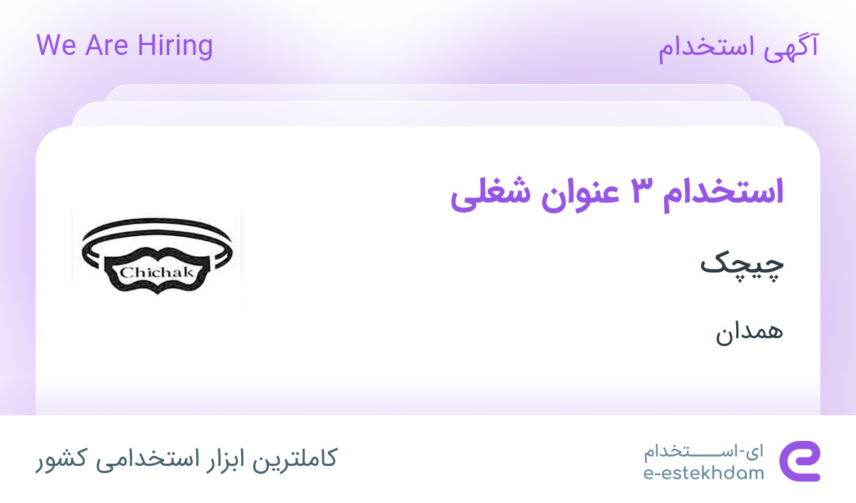 چیچک جهت تکمیل کادر خود در استان همدان از افراد واجد شرایط زیر دعوت به همکاری می نماید.