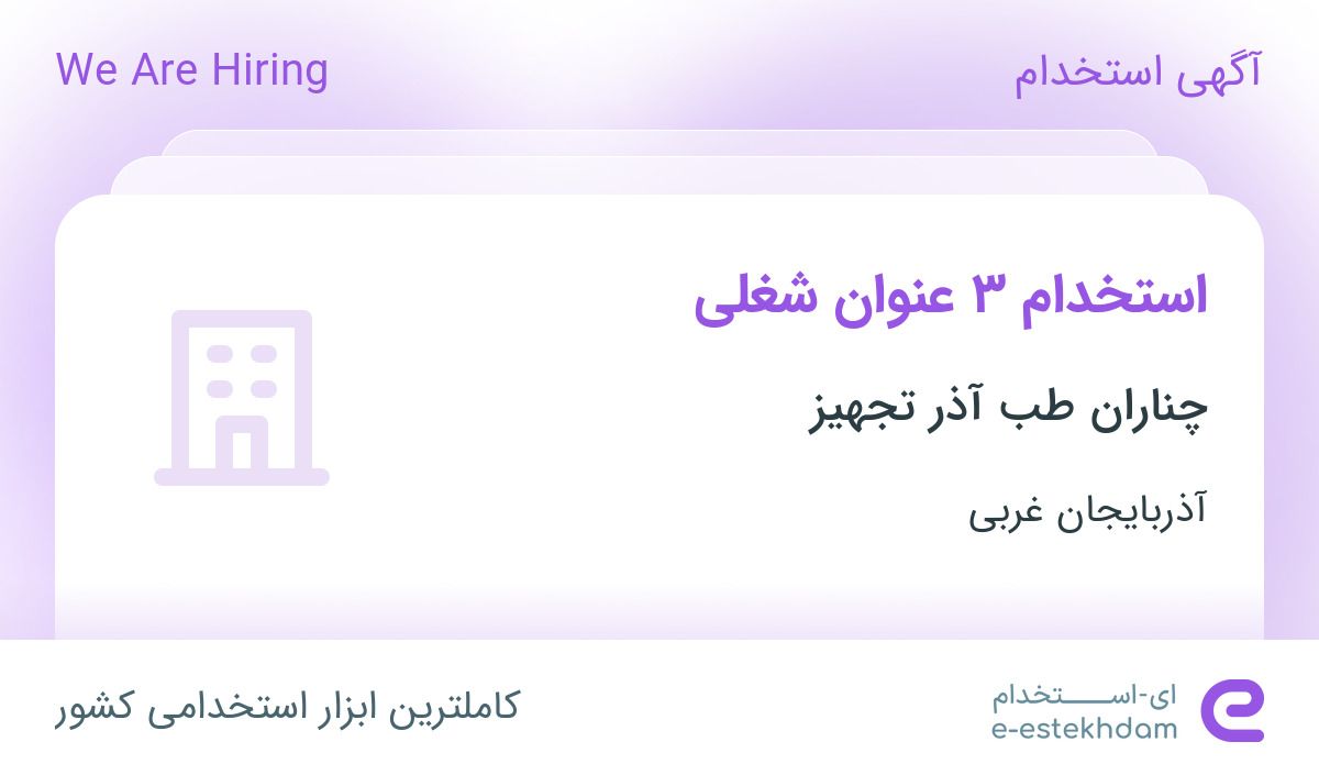 چناران طب آذر تجهیز جهت تکمیل کادر خود در استان آذربایجان غربی از افراد واجد شرایط زیر دعوت به همکاری می نماید.