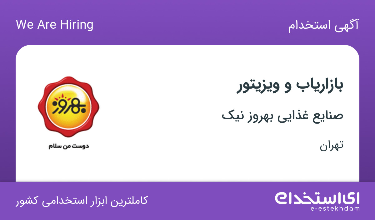 #استخدام #بازاریاب #ویزیتور #در #صنایع #غذایی #بهروز #نیک #در #شهرک #استقلال #تهران