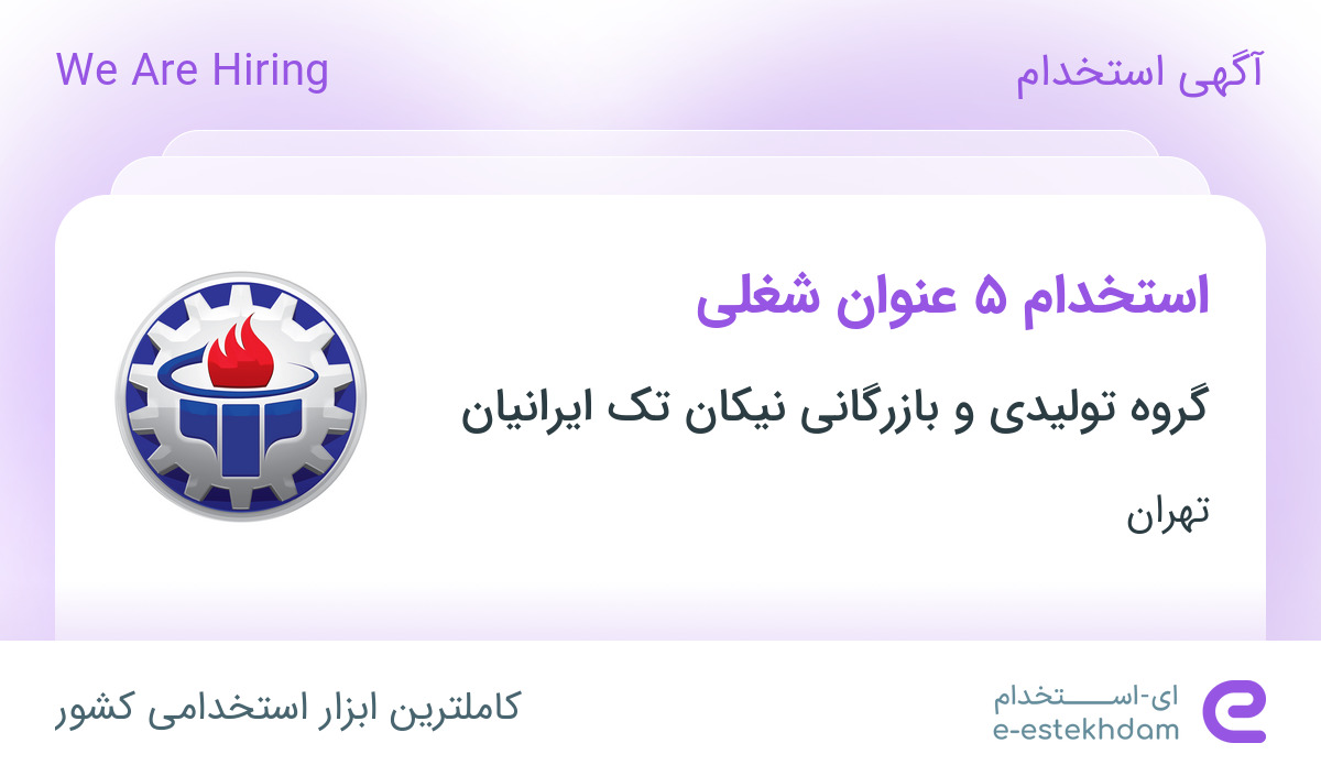 گروه تولیدی و بازرگانی نیکان تک ایرانیان جهت تکمیل کادر خود در استان تهران از افراد واجد شرایط زیر دعوت به همکاری می نماید.