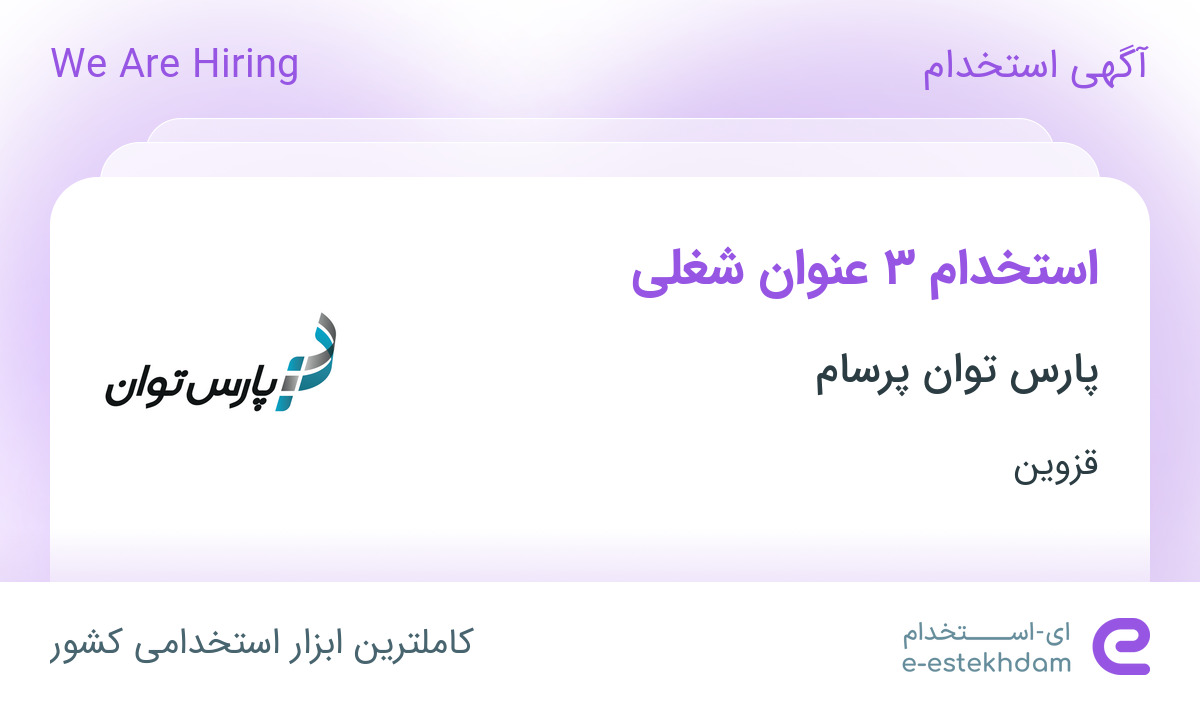 پارس توان پرسام جهت تکمیل کادر خود در استان قزوین از افراد واجد شرایط زیر دعوت به همکاری می نماید.