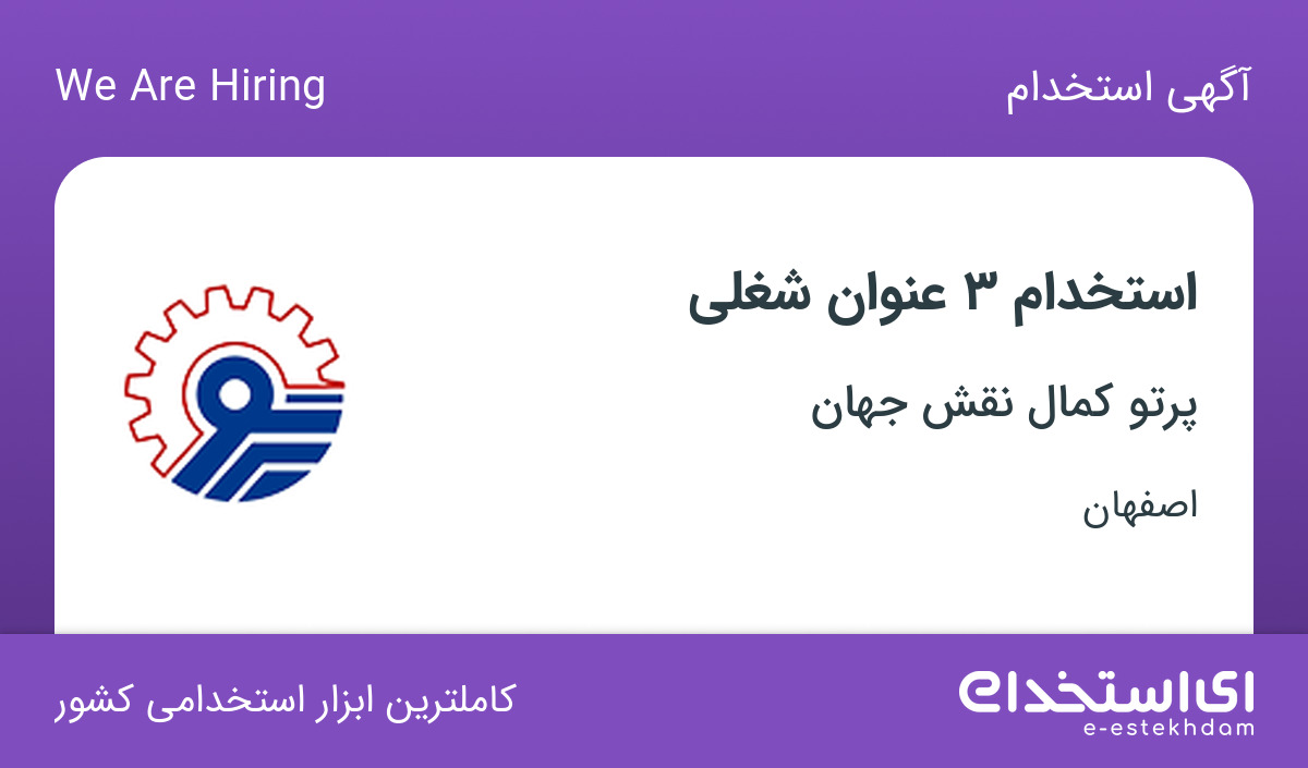 پرتو کمال نقش جهان جهت تکمیل کادر خود در استان اصفهان از افراد واجد شرایط زیر دعوت به همکاری می نماید.