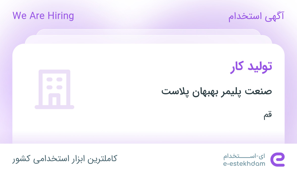 استخدام تولید کار در صنعت پلیمر بهبهان پلاست در قم