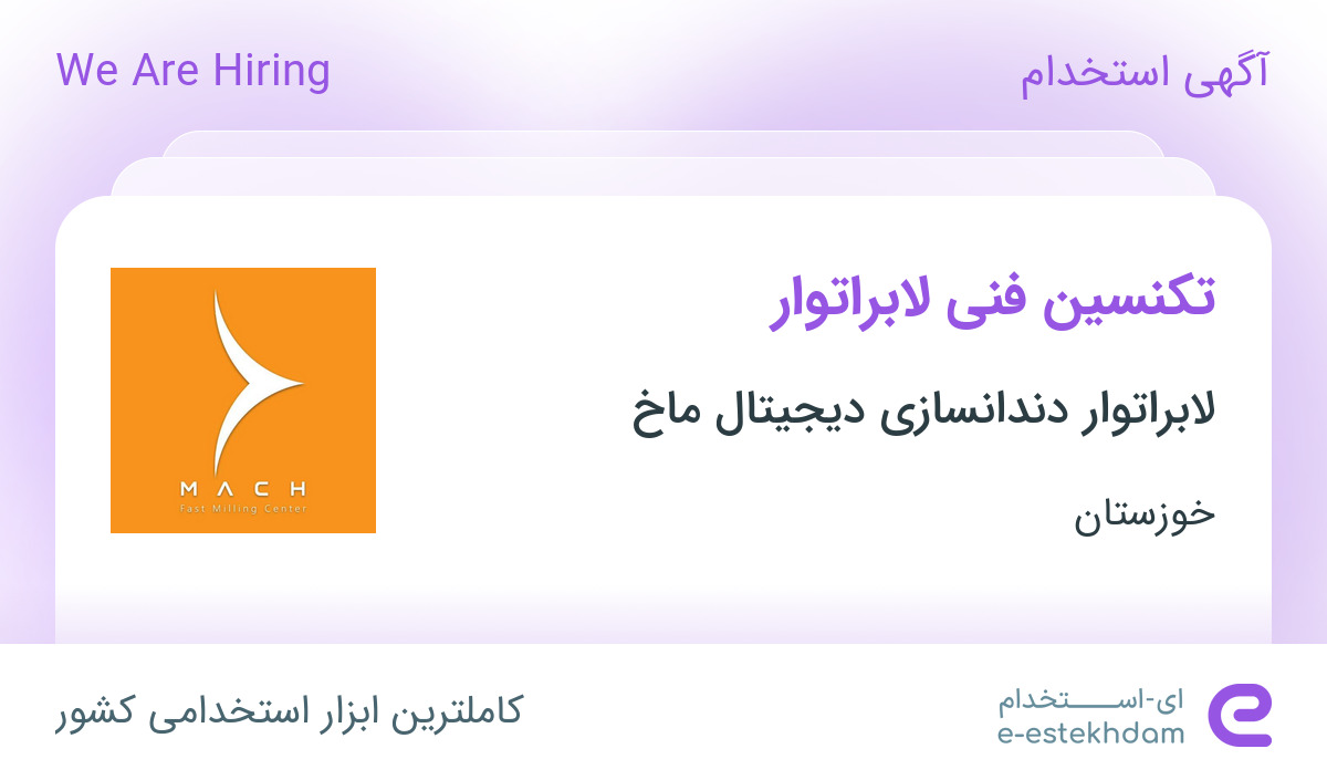 استخدام لابراتوار دندانسازی دیجیتال ماخلابراتوار دندانسازی دیجیتال ماخ جهت تکمیل کادر خود در استان خوزستان، شهر اهواز از افراد واجد شرایط زیر دعوت به همکاری مینماید.