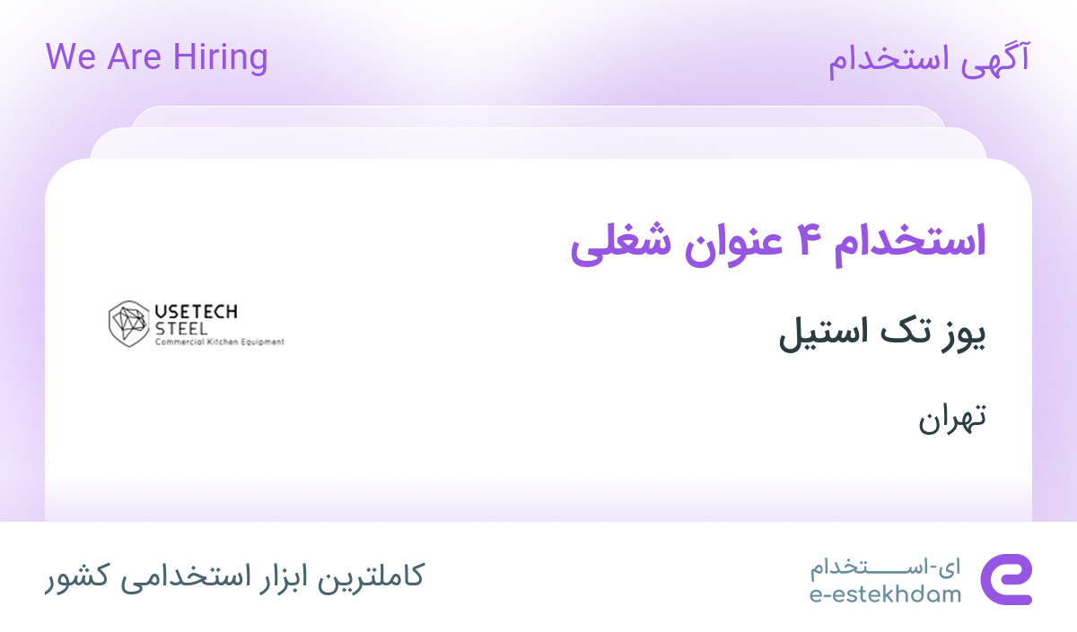 یوز تک استیل جهت تکمیل کادر خود در استان تهران از افراد واجد شرایط زیر دعوت به همکاری می نماید.