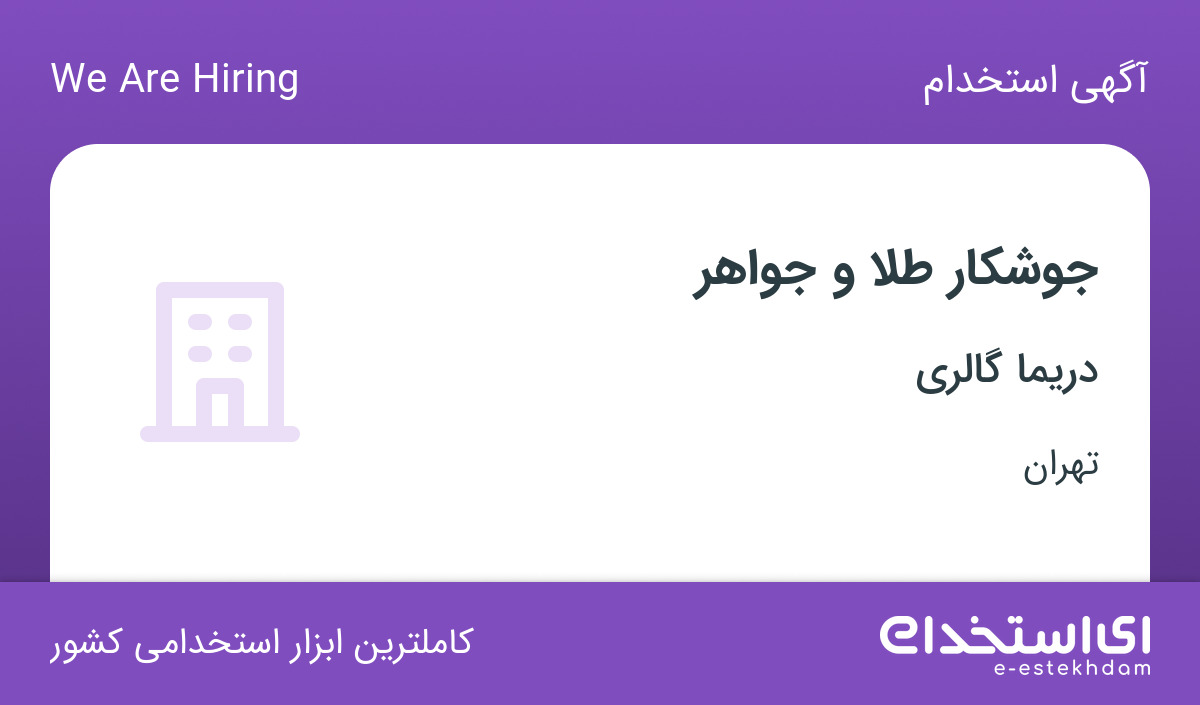 استخدام جوشکار طلا و جواهر در دریما گالری در سعادت آباد تهران