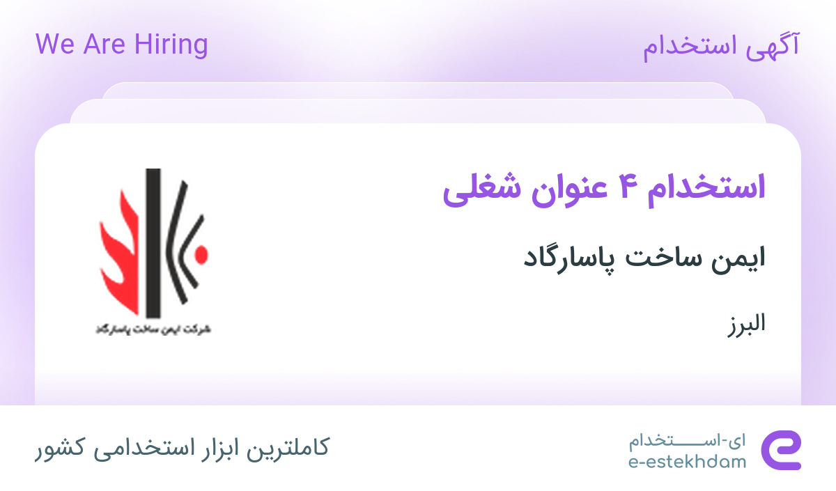 ایمن ساخت پاسارگاد جهت تکمیل کادر خود در استان البرز از افراد واجد شرایط زیر دعوت به همکاری می نماید.