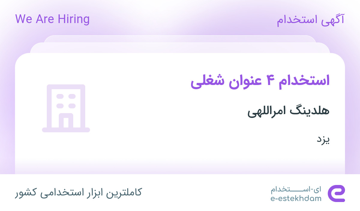 هلدینگ امراللهی جهت تکمیل کادر خود در استان یزد از افراد واجد شرایط زیر دعوت به همکاری می نماید.