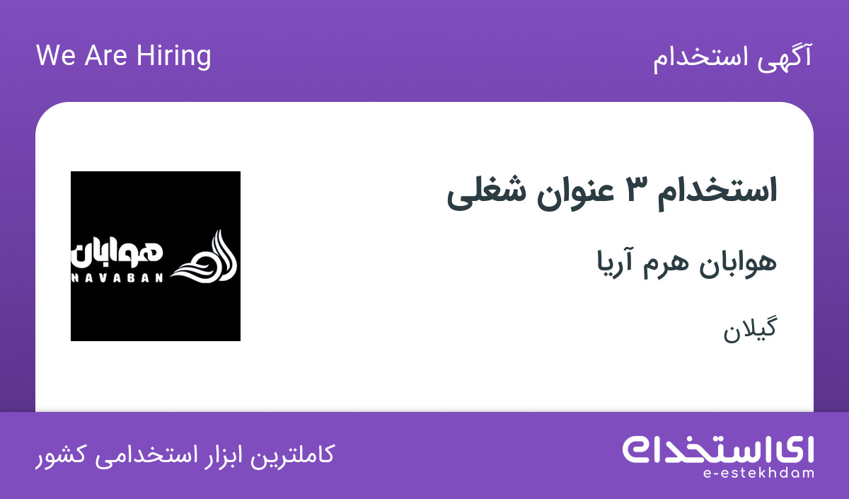 هوابان هرم آریا جهت تکمیل کادر خود در استان گیلان از افراد واجد شرایط زیر دعوت به همکاری می نماید.