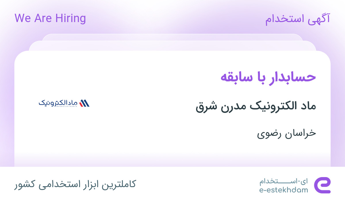 #استخدام #حسابدار #با #سابقه #در #ماد #الکترونیک #مدرن #شرق #در #خراسان #رضوی