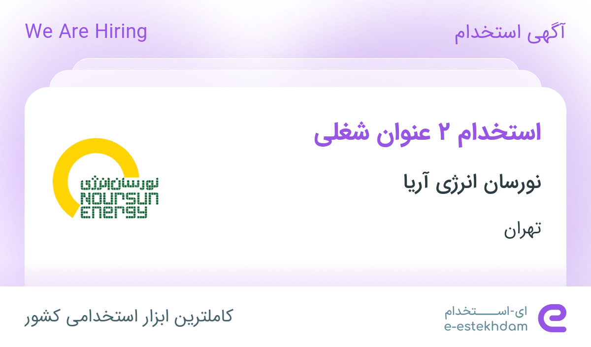 نورسان انرژی آریا جهت تکمیل کادر خود در استان تهران از افراد واجد شرایط زیر دعوت به همکاری می نماید.