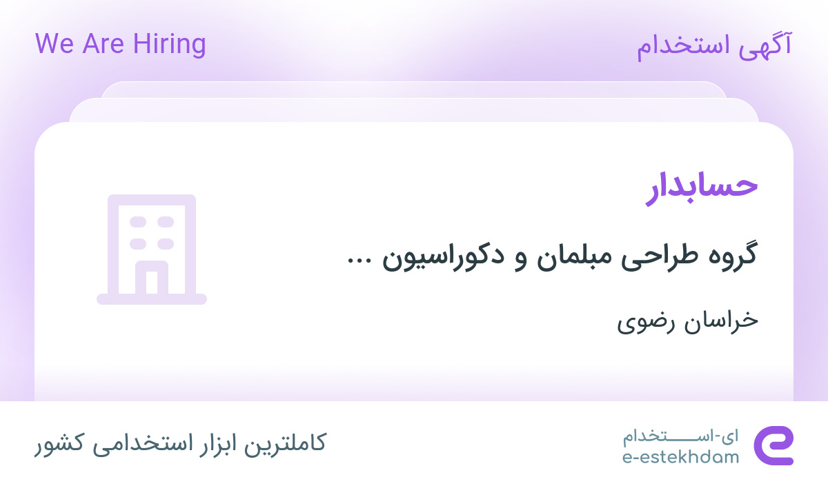 استخدام گروه طراحی مبلمان و دکوراسیون داخلی اشرف زادهگروه طراحی مبلمان و دکوراسیون داخلی اشرف زاده در استان خراسان رضوی (مشهد، منطقه ۹، صیاد شیرازی) جهت تکمیل کادر خود از متقاضیان ساکن استان خراسان رضوی استخدام می‌نماید