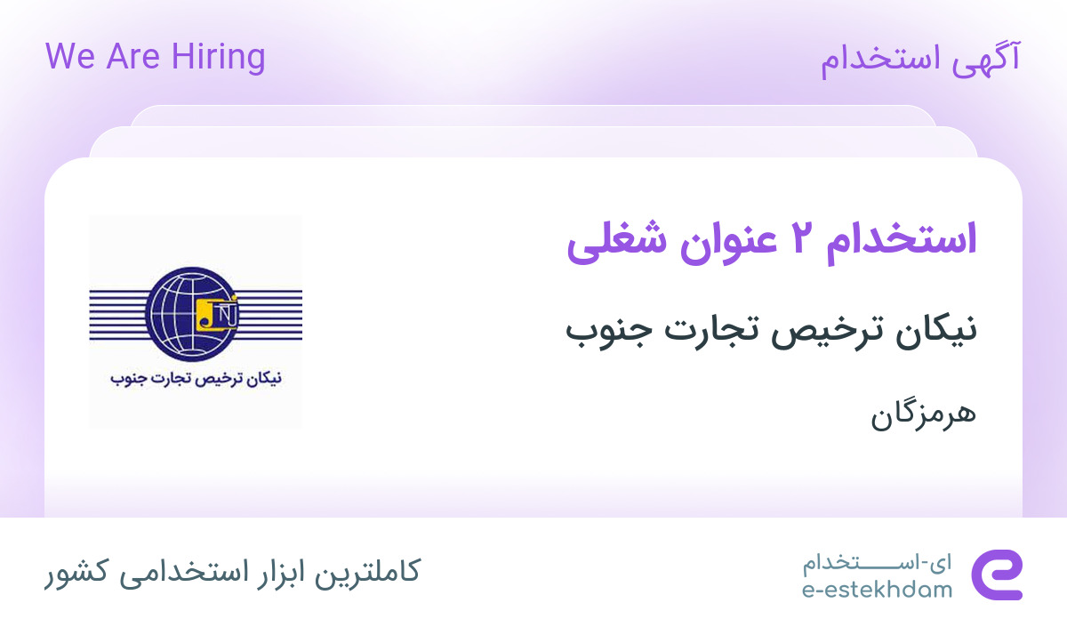 نیکان ترخیص تجارت جنوب جهت تکمیل کادر خود در استان هرمزگان از افراد واجد شرایط زیر دعوت به همکاری می نماید.