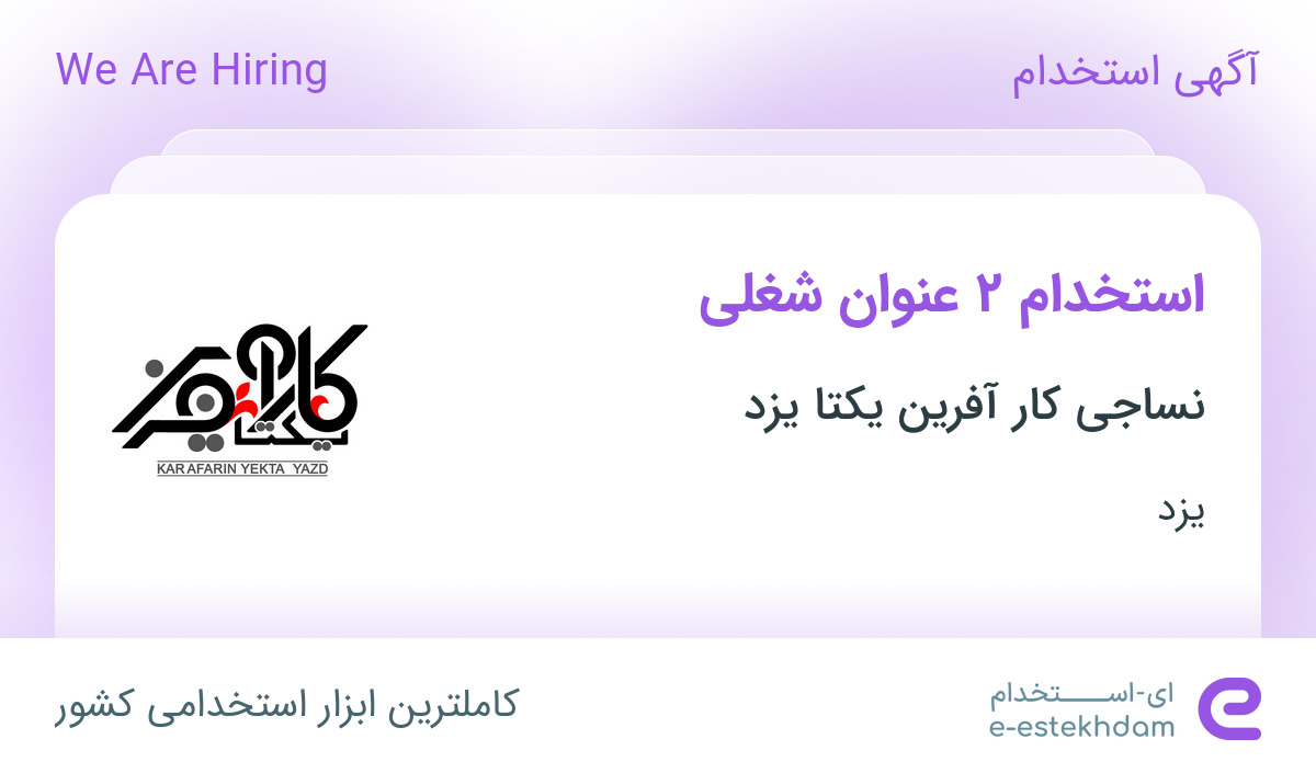 شرکت نساجی کار آفرین یکتا یزد جهت تکمیل کادر خود در استان یزد از افراد واجد شرایط زیر دعوت به همکاری مینماید.