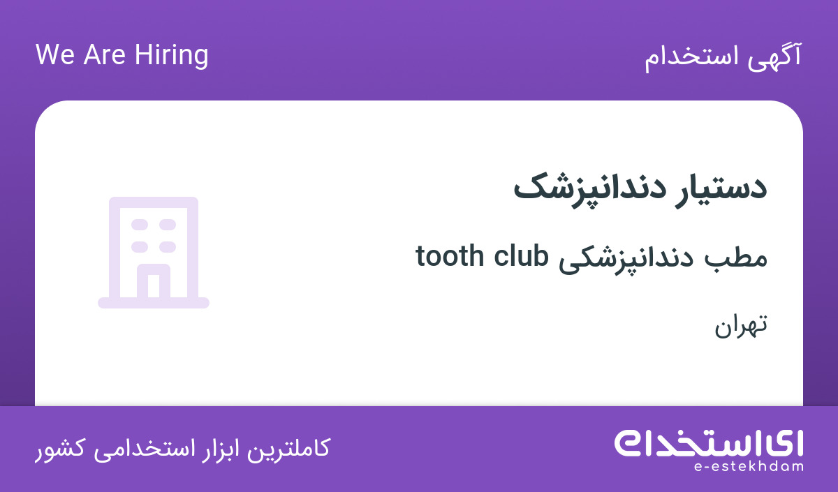 استخدام دستیار دندانپزشک در مطب دندانپزشکی tooth club در تهران