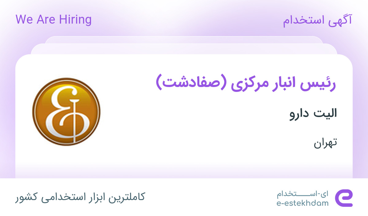 #استخدام #رئیس #انبار #مرکزی #صفادشت #در #الیت #دارو #در #شهرک #صنعتی #صفادشت #تهران