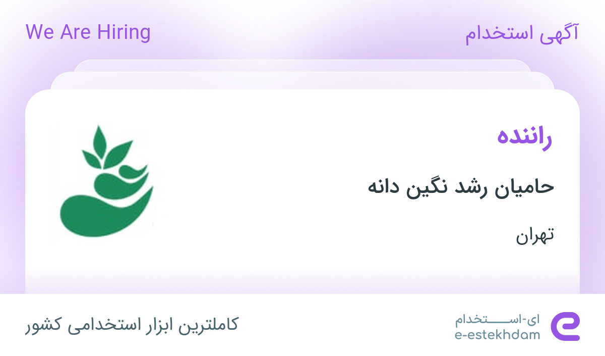 استخدام راننده در حامیان رشد نگین دانه در محدوده نیرو هوایی تهران