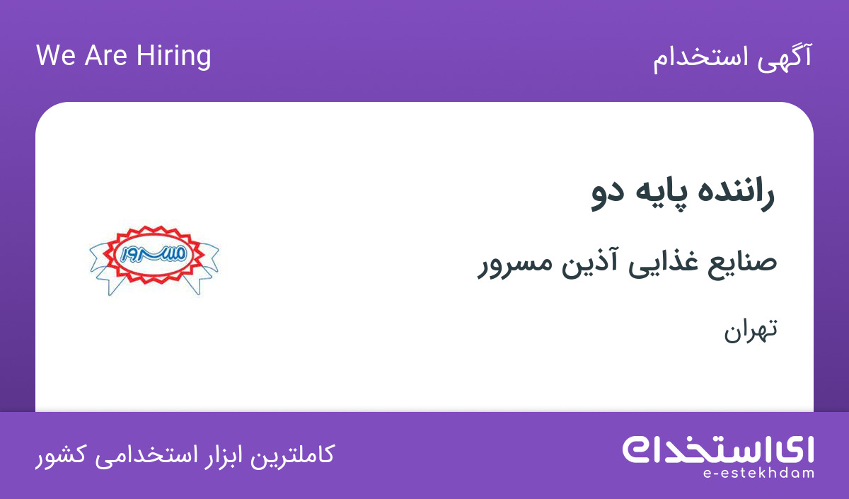 #استخدام #راننده #پایه #دو #در #صنایع #غذایی #آذین #مسرور #در #محدوده #الهیه #تهران