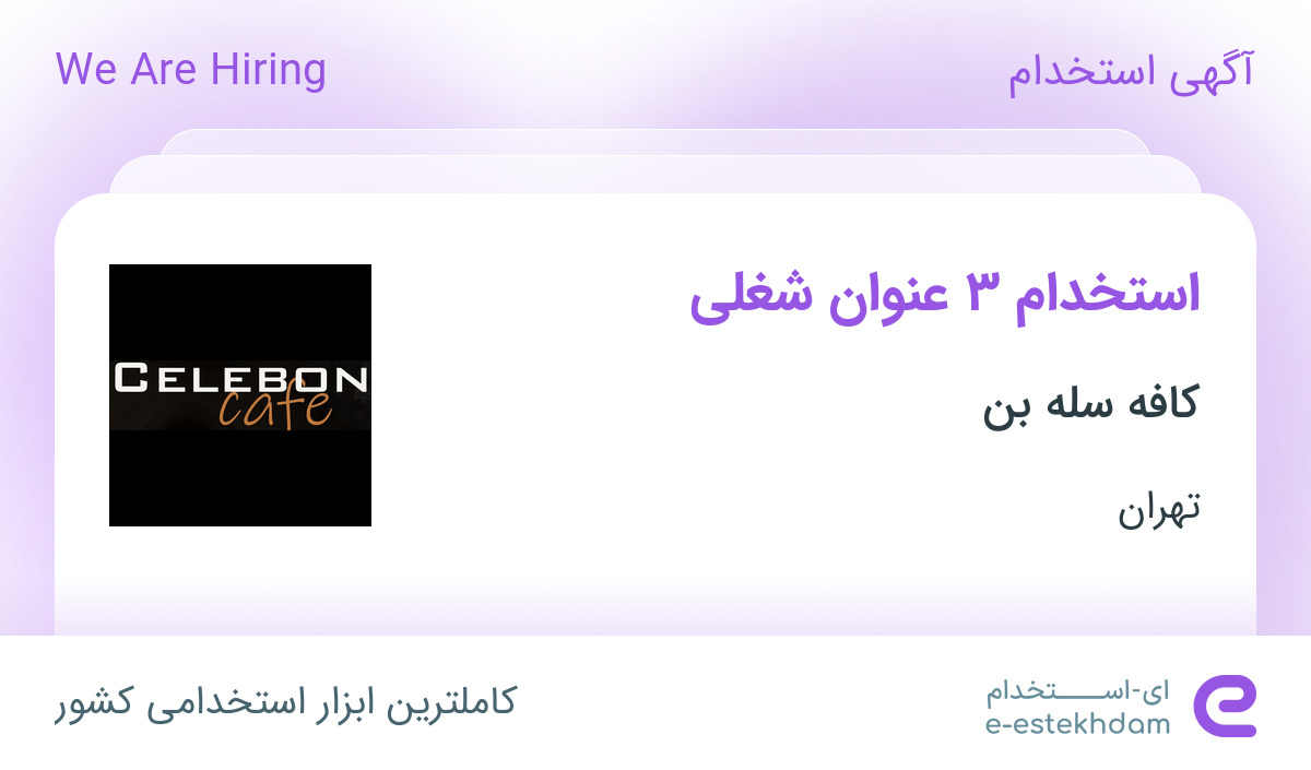 کافه سله بن جهت تکمیل کادر خود در استان تهران، منطقه سیدخندان از بانوان واجد شرایط زیر دعوت به همکاری مینماید.