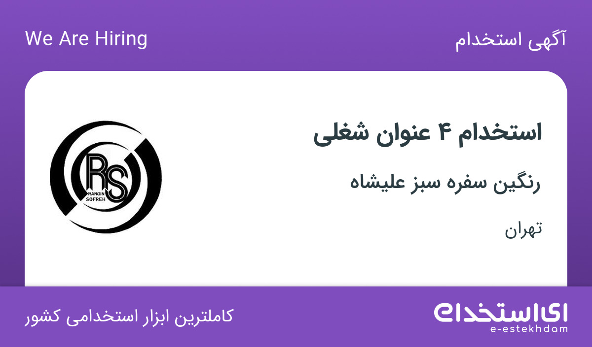 شرکت تولیدی بازرگانی رنگین سفره سبز علیشاه جهت تکمیل کادر خود در استان تهران از افراد واجد شرایط زیر دعوت به همکاری مینماید.