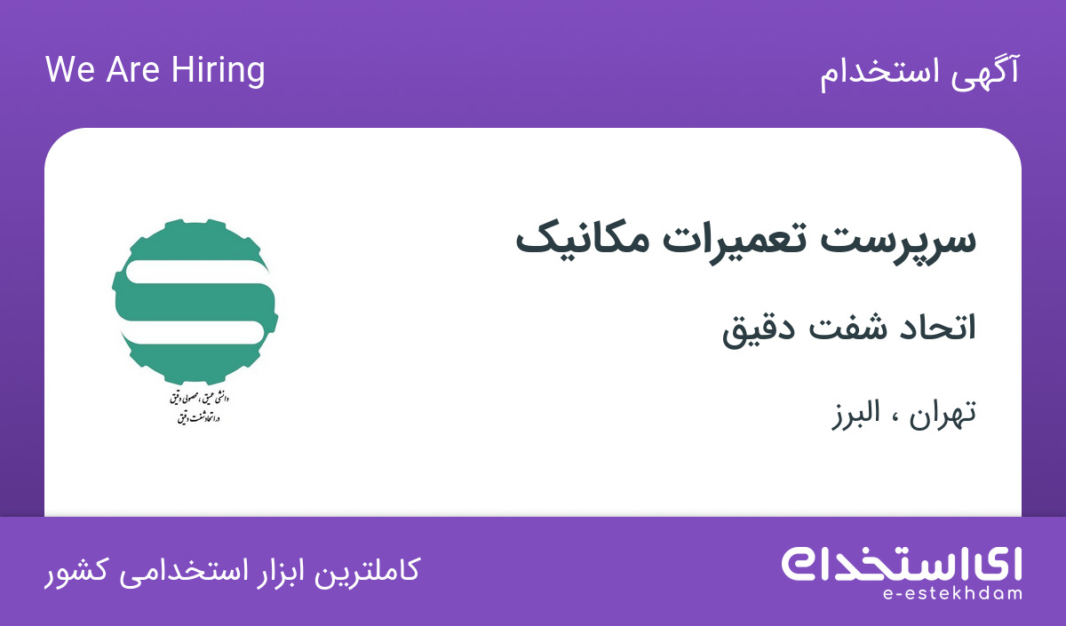 #استخدام #سرپرست #تعمیرات #مکانیک #در #اتحاد #شفت #دقیق #از #تهران #البرز