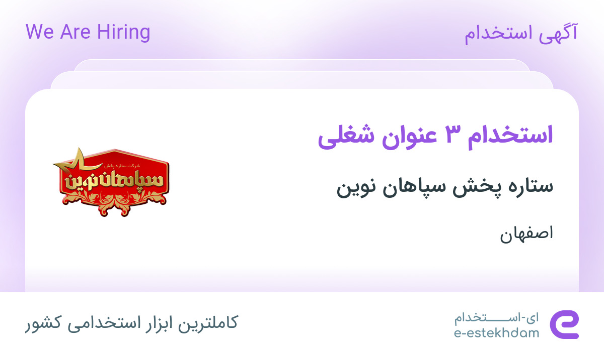 شرکت بزرگ پخش ستاره سپاهان نوین نماینده انحصاری محصولات چای احمد، تاپ من، چای و کافی محمود، رب یول، دستکش رز مریم، دراژه و … جهت تکمیل تیم فروش خود در شهر اصفهان و حومه از افراد واجد شرایط زیر دعوت به همکاری مینماید.