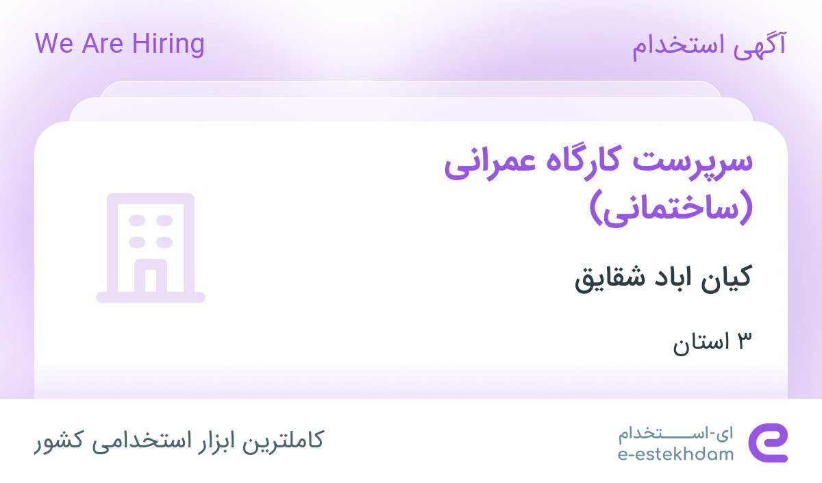 استخدام سرپرست کارگاه عمرانی (ساختمانی) در کیان اباد شقایق در ۳ استان