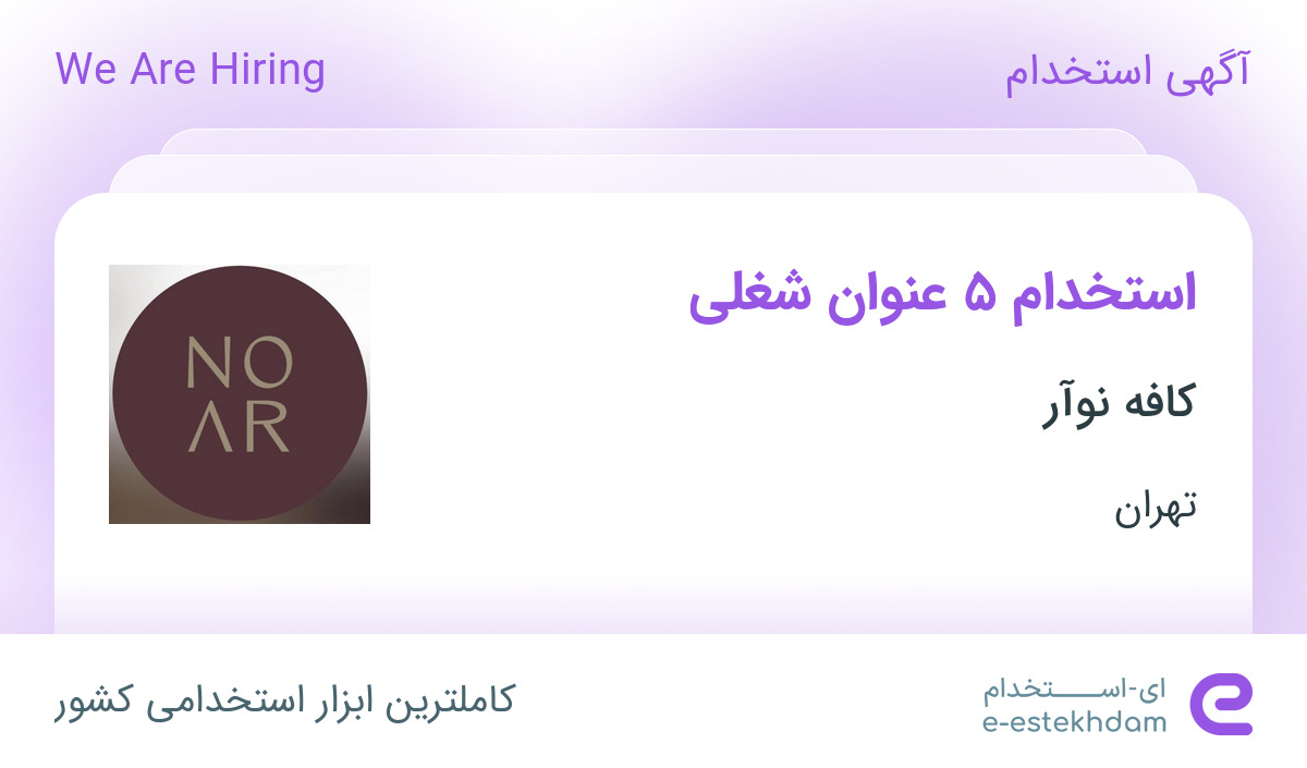 کافه نوآر جهت تکمیل کادر خود در استان تهران از افراد واجد شرایط زیر دعوت به همکاری مینماید.