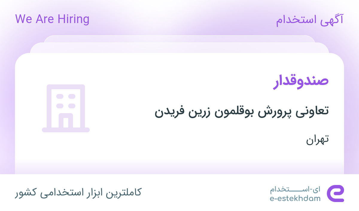 #استخدام #صندوقدار #در #تعاونی #پرورش #بوقلمون #زرین #فریدن #در #محدوده #جوادیه #تهران