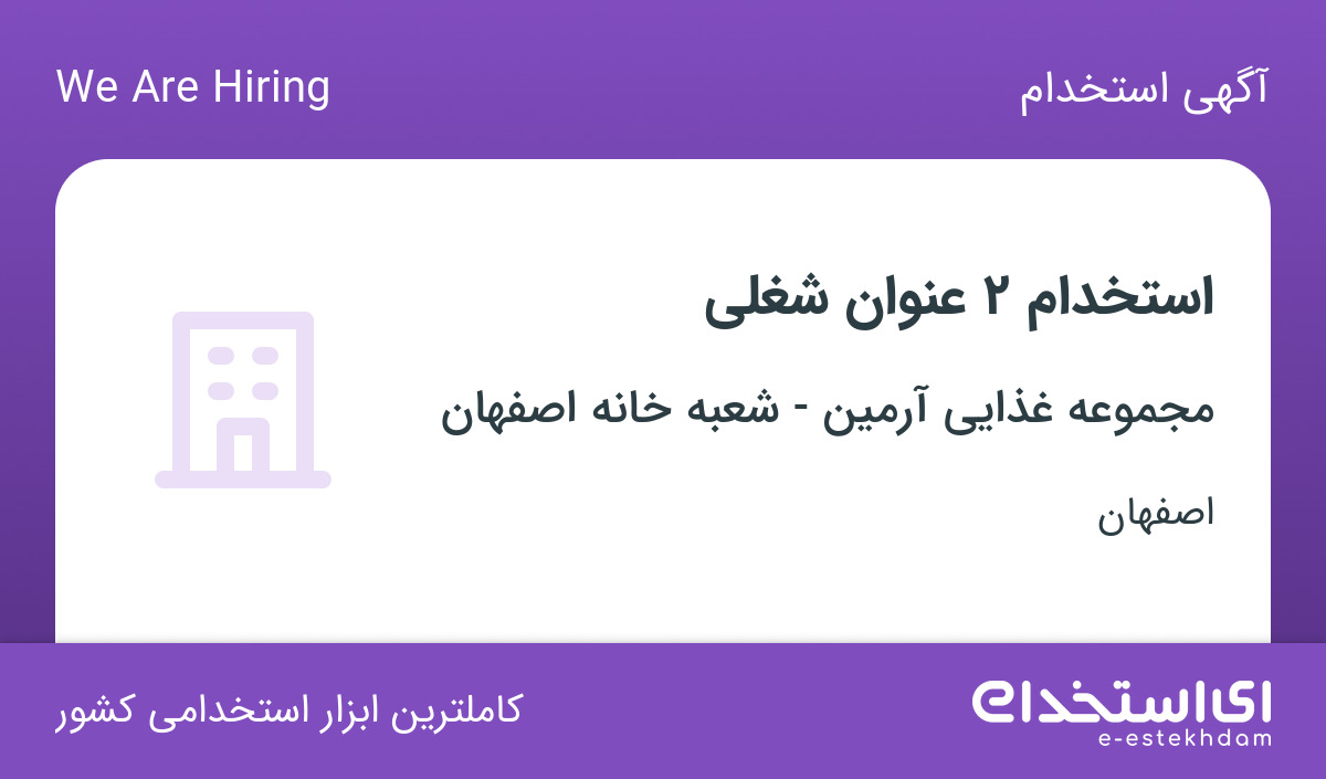 استخدام مجموعه غذایی آرمین – شعبه خانه اصفهان