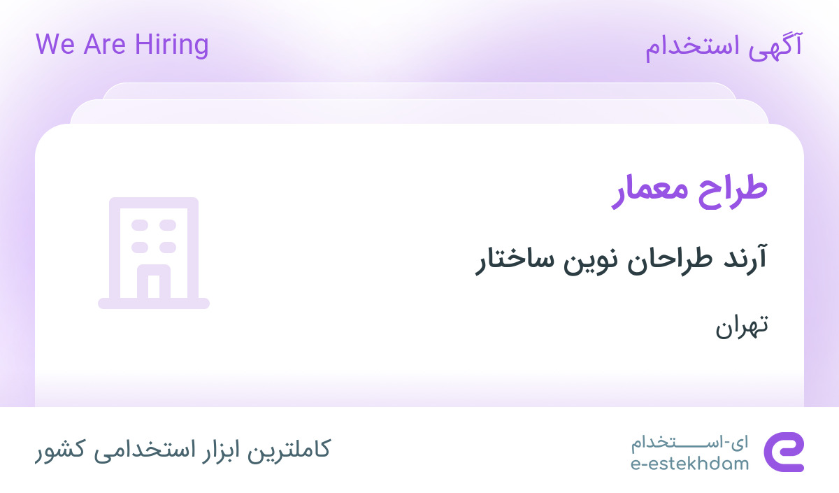 شرکت آرند طراحان نوین ساختار جهت تکمیل کادر خود در استان تهران از افراد واجد شرایط زیر دعوت به همکاری می نماید.